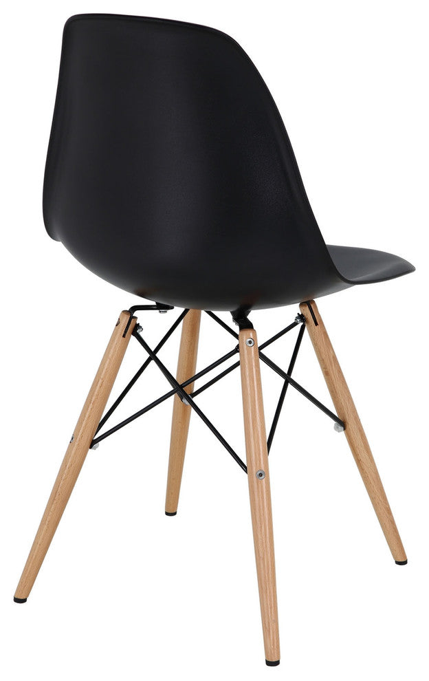 Modern Eiffel Side Chair Wood Dowel Base, Black