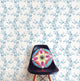 This wallcovering is packaged and sold in a double roll that is 20.5" wide x 33'' long. It has a straight match, with a design repeat every 10.4". It is unpasted, washable and strippable vinyl. This matte paper is a modern floral pattern with stems running vertically throughout. The background is white, with a blue pattern.