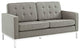 The mid-20th century was a time when hopes were at their highest. Technological developments were bustling forward, and the new world was just barely visible in the distance. But this time also presented a dilemma of sorts. The test of this forthcoming era was to be whether industry would foster comfort or stifle it. What makes the Loft series so complete? At first glance, it displays a pleasant linear design with an external tubular stainless steel frame. The back and seat are tufted and buttoned to enhance the overall richness of the piece. But can these aspects be said to define the totality of a classic? The answer then must be something profound. A thought that serves as representative of that era, while matching the sentiments of our present age. Our suggestion is that the Loft series conveys the potential of progress. From amidst the steel base, a comfortable seating experience is attained. From out of the exponential surge of technological growth, comes peace and solace. Perhaps this is why Loft is the sofa series of choice for so many Fortune 500 companies. Aside from its iconic feel, the set is symbolic of a time when technological innovation could do no wrong. When faster'' was seen only as something positive.The Loft series is the preferred choice for reception areas, living rooms, hotels, resorts, restaurants and other lounge spaces.Set Includes:One - Loft Loveseat Overall Product Dimensions: 31"L x 63"W x 32"HSeat Dimensions: 22.5"L x 18.5"W x 16.5"HArmrest Dimensions: 6"W x 23.5"HBackrest Dimensions: 4.5"W x 18"HArmrest Height from Seat: 7"HCushion Thickness: 4.5"H