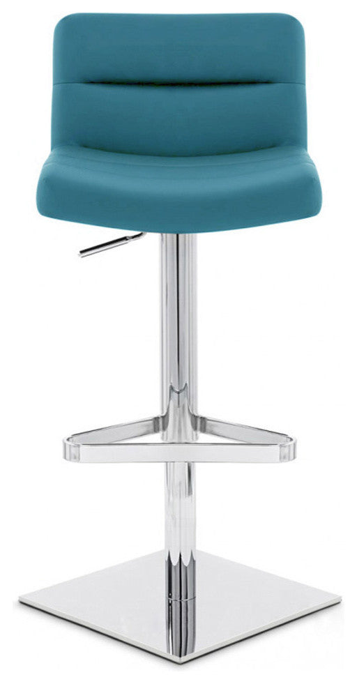 Modern Lattice Bar Stool Teal Leatherette Polished Chrome Adjustable Base