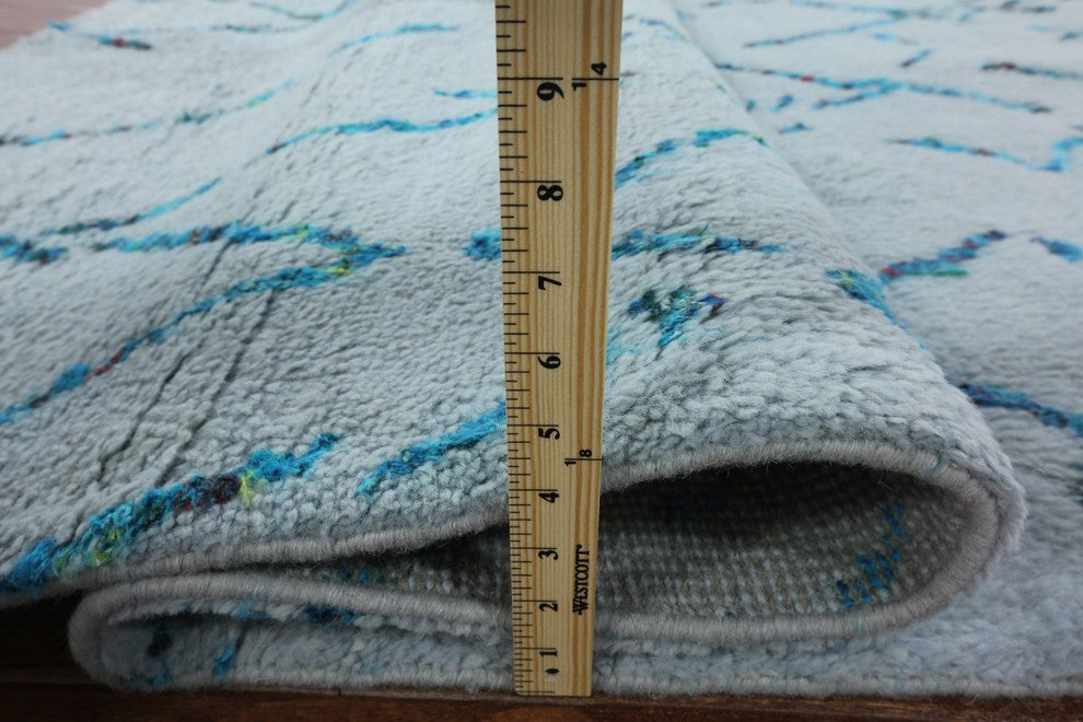 Modern Oriental Light Blue Moroccan Hand-Knotted Wool Rug, 5'x8'