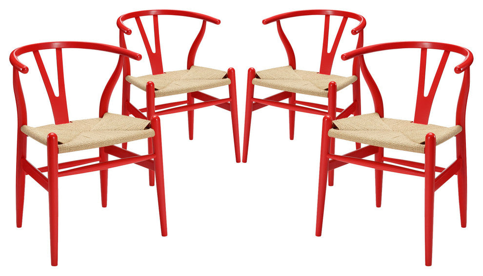 Time flows effortlessly through the Amish wooden bar stool. The craftsmanship is evident throughout a piece that appears both petite and boldly courageous. While Amish conveys a transitional feel with its solid beechwood back and base, the result is an enduring design with a style that doesn''t fade. Given the iconic form and staggered-level wooden support rods, Amish deftly develops the interplay between permanence and sequential movements forward. The seat is made of paper rope, a new twine that is eco-friendly, soft, anti-static and durable.Set Includes:Four - Amish Dining Armchair Overall Product Dimensions: 22"L x 21.5"W x 28.5"HSeat Dimensions: 14.5"L x 17"HArmrest Height: 28"H