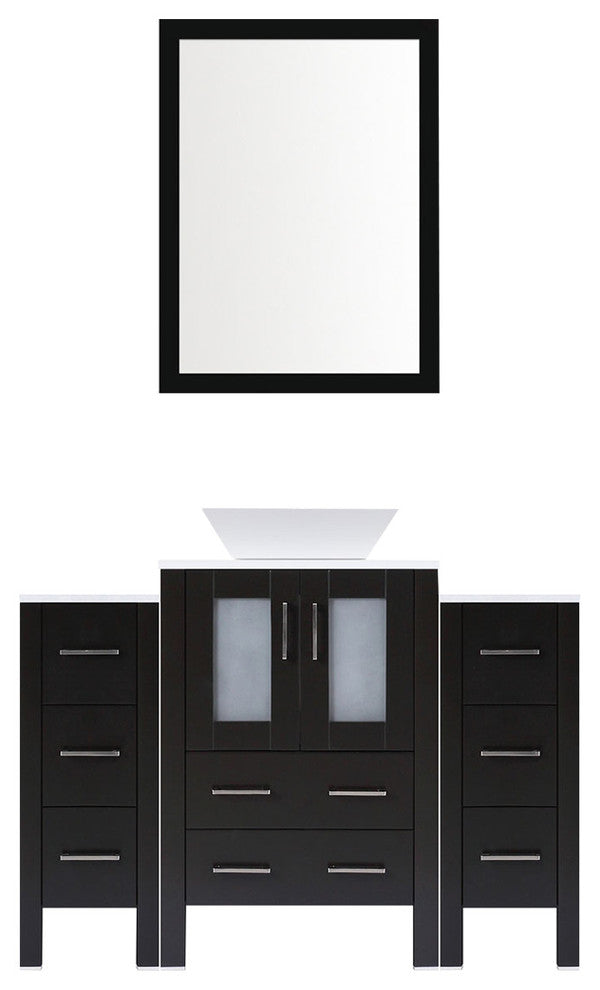 Modern Vanity Set With Two Sink Bases With Mirrors and Five Drawer Bases, Espres