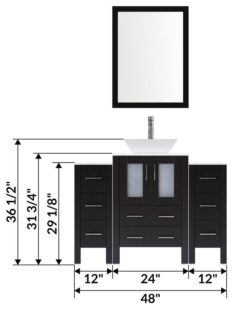 Each vanity base cabinet comes with individual phoenix stone vanity top. If two or more vanity cabinets are installed next to each other there will be a visible seam between vanity tops and between vanity cabinets. Due to manufacturing process any dimensions may have a slight variation.