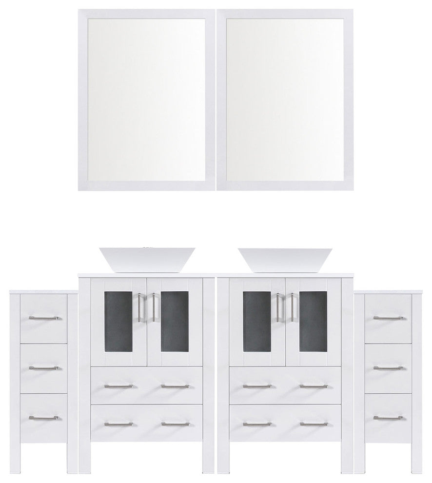 Modern Vanity Set With Two Sink Bases With Mirrors and Two Drawer Bases, White,