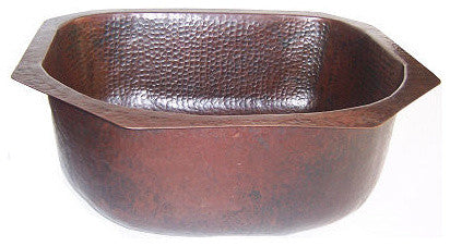 This kitchen copper sink has a standard 3.75 diameter hole at the front part of it. It is a single bowl hammered copper sink, it is finished in weathered copper color.The copper sheet is 14 gauge (0.064" thickness). The border around varies between 1"-1.5".Along your home decoration, this piece it will add a unique touch to your kitchen making it a focal point. The patina can be damaged if any abrasive substances stay for long periods of time on the sink surface, because of this, washing it after usage is recommended; besides that, no more maintenance is required."Hand-hammered and mold-cut to perfectionHandcrafted by Mexico''s Finest ArtisansWe include 1" long brown screws in all of our hammered copper switch plates