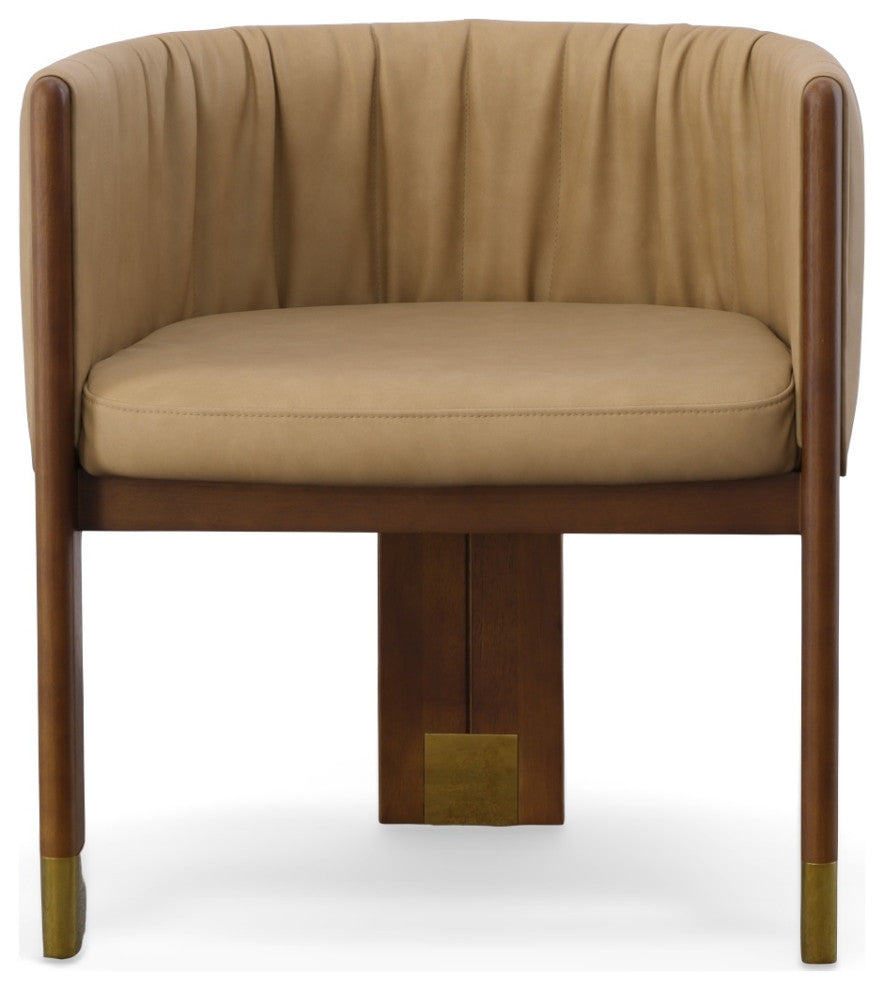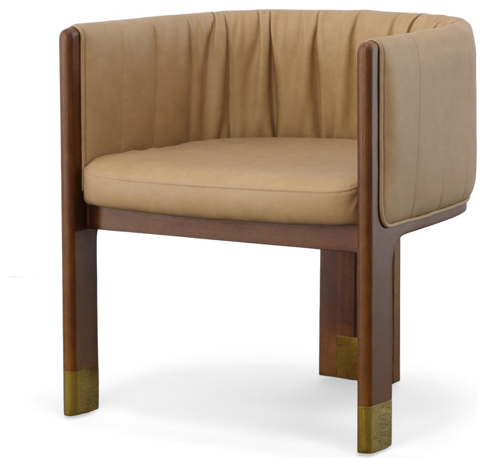Solidly built Elati Dining Chair is made from solid Walnut Wood and Tan Leatherette. Will go perfectly with majority of our walnut base dining tables.