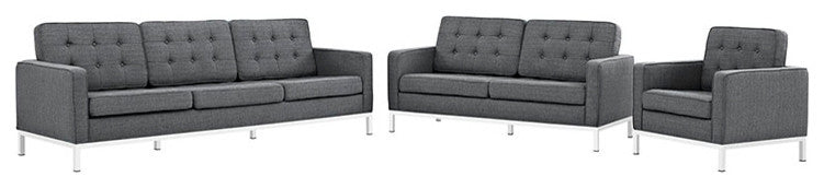 Modway 3-Piece Fabric Loft Living Room Set, Gray