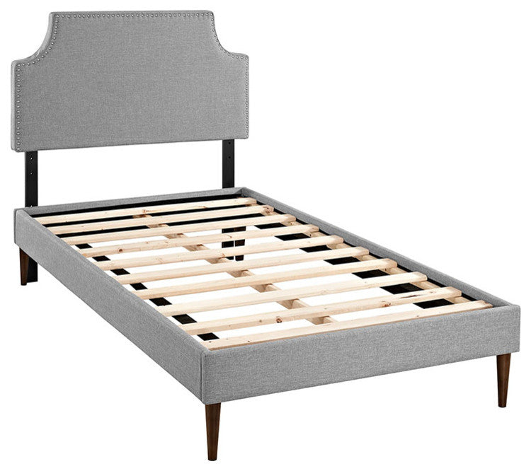 Modway Laura Twin Fabric Platform Bed With Round Tapered Legs, Light Gray