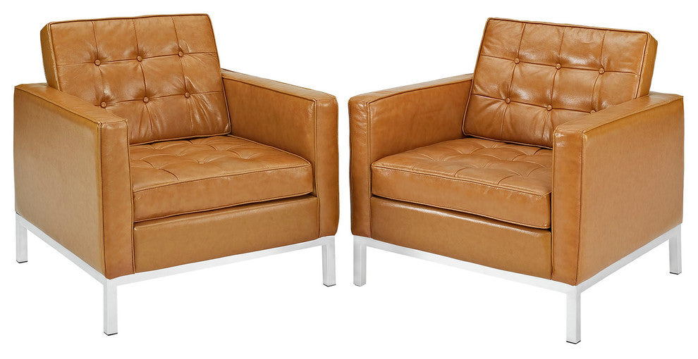The mid-20th century was a time when hopes were at their highest. Technological developments were bustling ford, and the new world was just barely visible in the distance. But this time also presented a dilemma of sorts. The test of this forthcoming era was to be whether industry would foster comfort or stifle it. What makes the loft series so complete? At first glance, it displays a pleasant linear design with an external tubular stainless steel frame. The back and seat are tufted and buttoned to enhance the overall richness of the piece. But can''these aspects be said to define the totality of a classic? The answer then must be something profound. A thought that serves as representative of that era, while matching the sentiments of our present age. Our suggestion is that the loft series conveys the potential of progress. From amidst the steel base, a comfortable seating experience is attained. From out of the exponential surge of technological growth, comes peace and solace. Perhaps this is why loft is the sofa series of choice for so many fortune 500 companies. Aside from its iconic feel, the set is symbolic of a time when''technological innovation could do no wrong. When ''faster'' was seen only as something positive. The loft series is the preferred choice for reception areas, living rooms, hotels, resorts, restaurants and other lounge spaces.Set includes:two - loft armchairoverall product dimensions: 30"l x 31"w x 31.5"hseat dimensions: 20"l x 23"w x 17"hbackrest dimensions: 17"harmrest height: 23"hmaterials: frame: plywoodlegs: 304 stainless steel tubefill: synthetic foamseating surfaces upholstery: genuine top grain leatherother upholstery: pvcfeatures: genuine leather seating surfacestubular stainless steel framemetal frame and legsfoot caps to prevent scratchingweight: 119