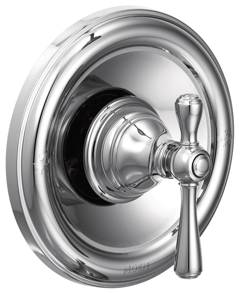 The graceful lines and attention to detail in every Moen bathroom and kitchen faucet is designed to make impressions that last.- Rough In Valve Required- Valve trim is constructed of metal - ensuring durability and dependability- Covered under Moen''s limited lifetime warranty for residential installations and 5-year limited warranty for commercial installations- Premier finishing process - finishes will resist rusting and corrosion through everyday use- Coordinates seamlessly with Moen''s Kingsley line of products- Volume and temperature control - handle pulls out to adjust volume and pushes in to turn flow of water off; turn handle left and right to adjust temperature of water- Pre-set safety stop with override capability included with valve trim- ADA compliant - complies with the standards set forth by the Americans with Disabilities Act for shower systems- Escutcheon (Trim Plate) Diameter: 7- Rough-in valve is not included - when adding to cart, valve options will be presented"