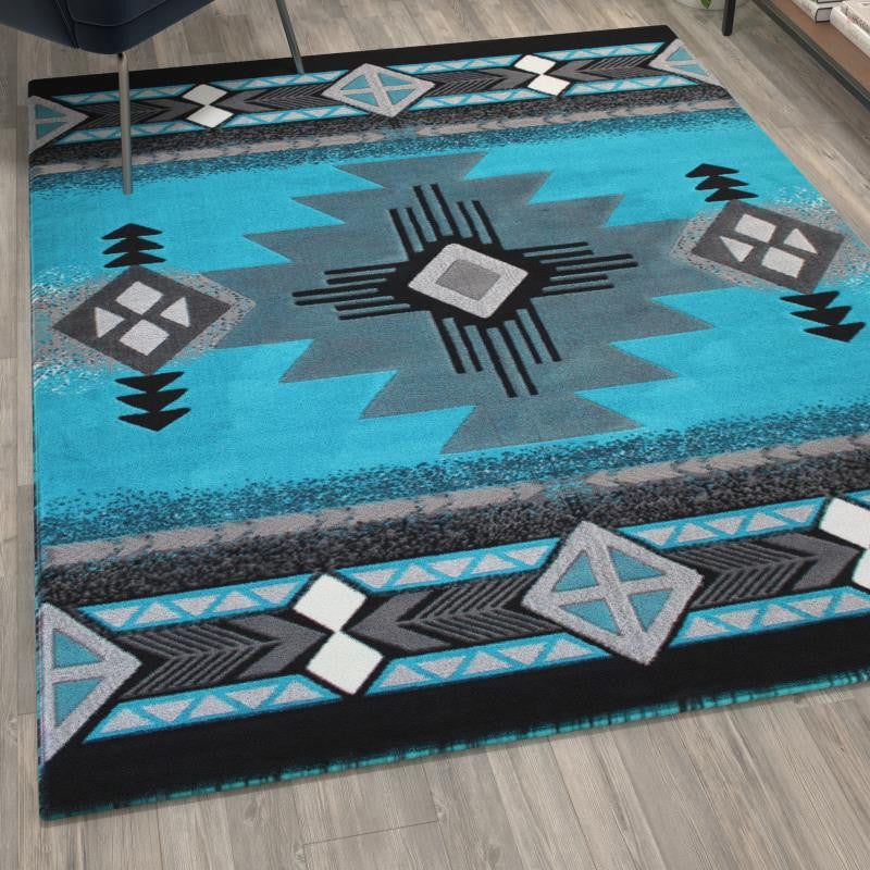 Mohave Collection Traditional Southwestern Style Area Rug, Turquoise, 5' X 7'