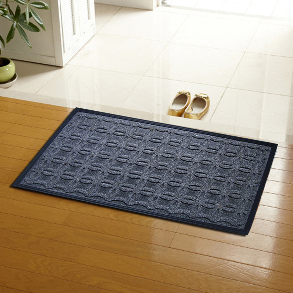 This doormat is rubber backed mat with polypropylene surface that is ideal for keeping moisture and dirt away from indoor floors. The polypropyle rug surface of this mat adds a non-slip grip for safety