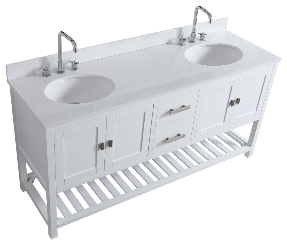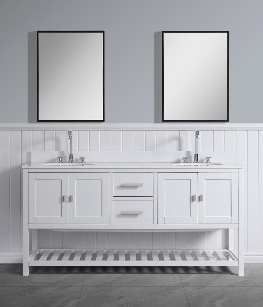 Monaco Bathroom Vanity Base Cabinet Without Top, White, 72", Double Sink