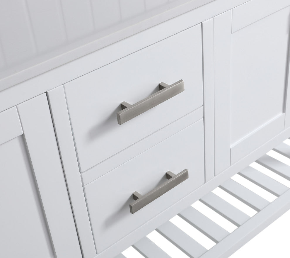 Design Element''s Monaco Vanity transforms your daily routine into a spa-like experience in a bathroom that''s both perfectly organized and effortlessly chic. Its sturdy birch hardwood construction stands up to busy households, while soft-closing drawers and doors ensure a quiet, refined environment. An open shelf at the base provides quick access to towels or toiletries, and satin nickel pulls add a sophisticated touch. Pair it with your favorite countertop, and enjoy the peace of mind that comes from a vanity built to enhance both your space and your daily routine.