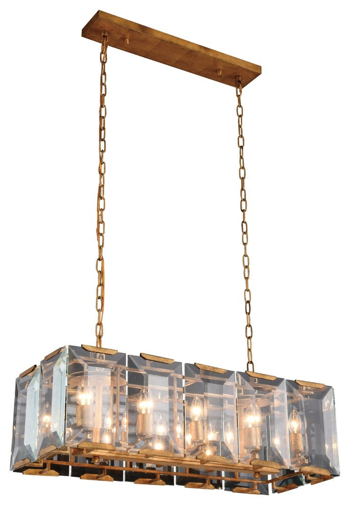 Monaco Pendant Lamp, Golden Iron Finish, Rectangular, 10 Lights