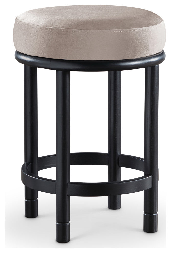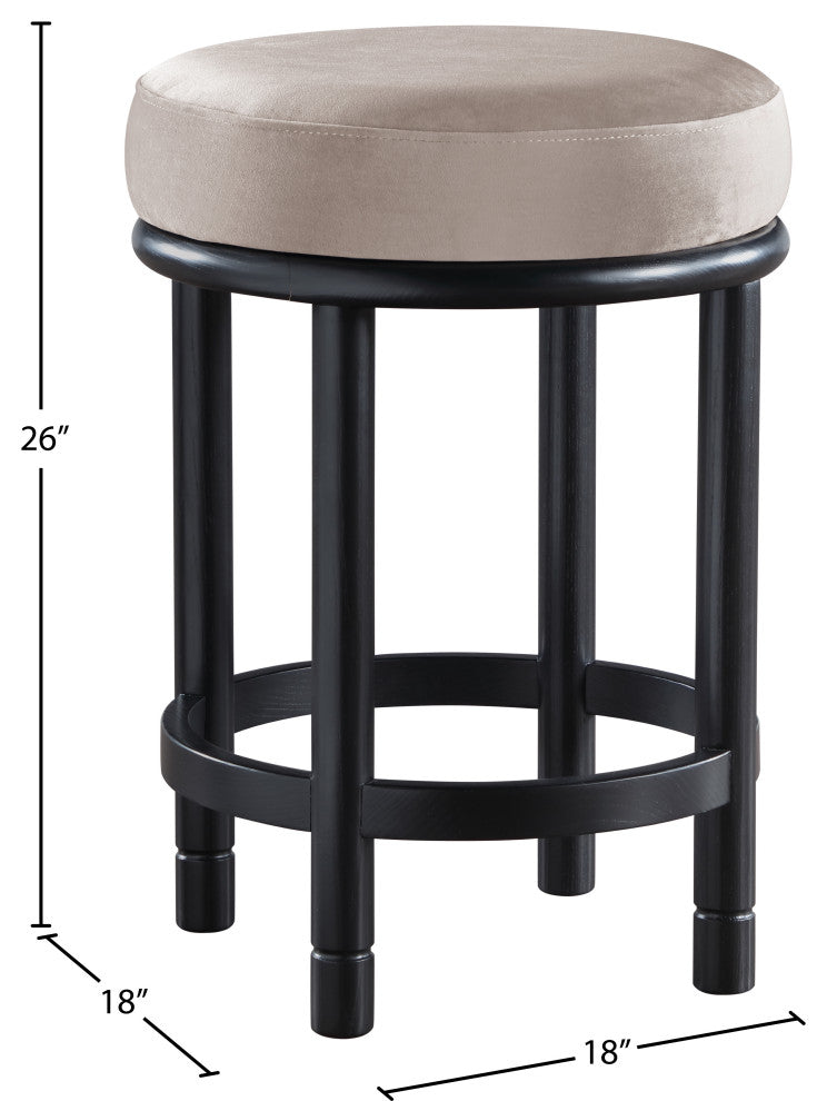 Monette Upholstered Bar and Counter Stool, Taupe, Velvet, Black Finish