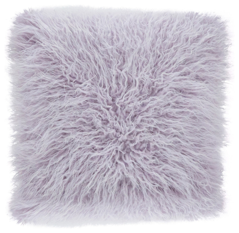 Mongolian Faux Fur Poly Filled Throw Pillow, Lavender, 18"x18"
