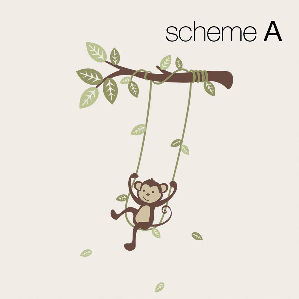 Little ones will love this adorable monkey swinging on a swooping vine! Playfully perfect in baby nurseries, kid"™s bedrooms, or playrooms. Choose from our three color schemes.Size: Overall Size (approx): 40"w x 53"h What''s Included:Branch Monkey Vine Leaves