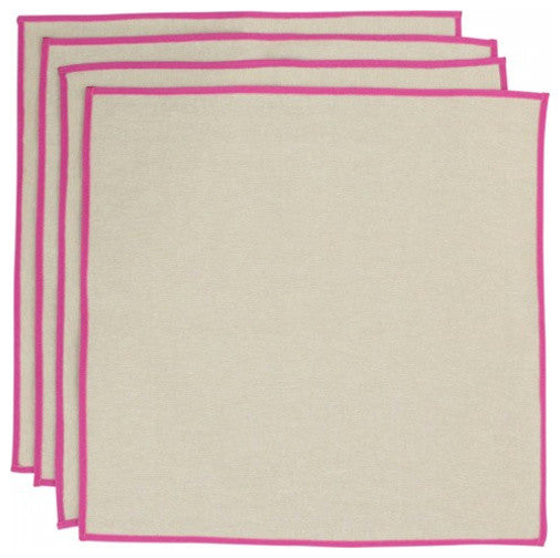 Monogrammed Jute Napkins Pink Trim (Set Of 4), Black Thread, Shelly Font, F