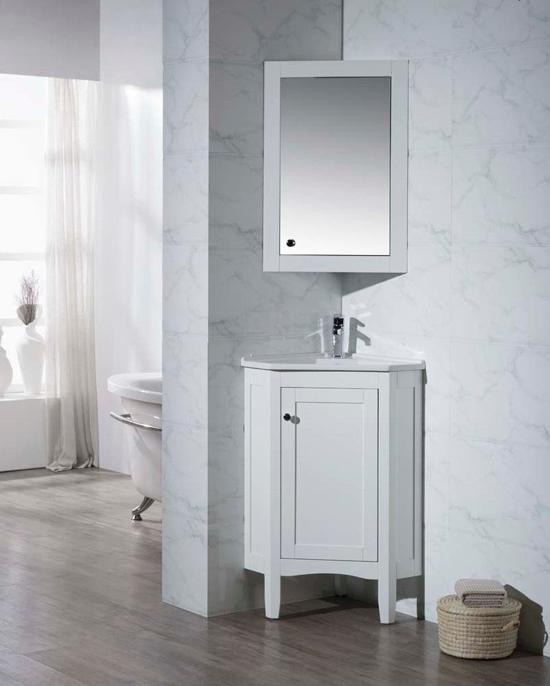 Monte 25" Corner Bathroom Vanity With Medicine Cabinet, White