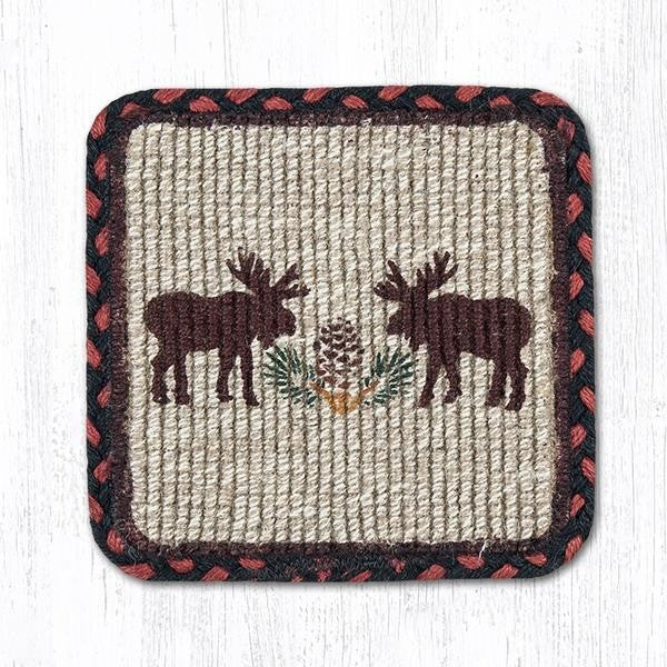 Moose/Pinecone Wicker Weave Trivet 9"x9"