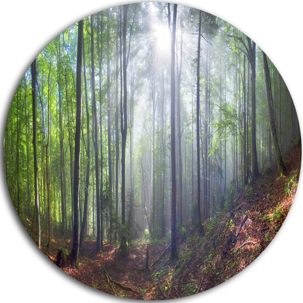 Morning Sun Rays In Carpathian, Landscape Round Metal Wall Art, 38"