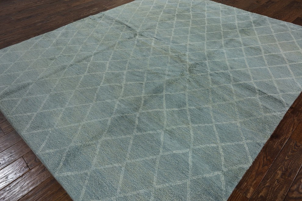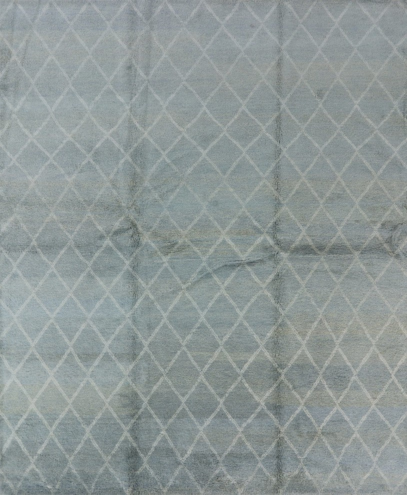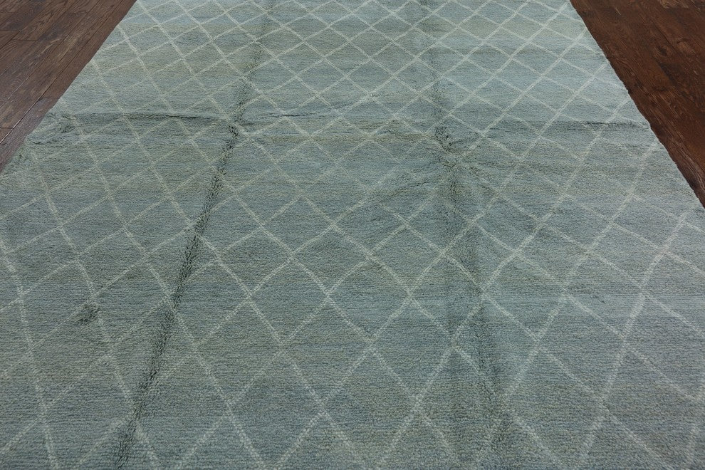 Moroccan Collection Hand Knotted Oriental 8''x10'' Blue Geometric Wool Rug H9017