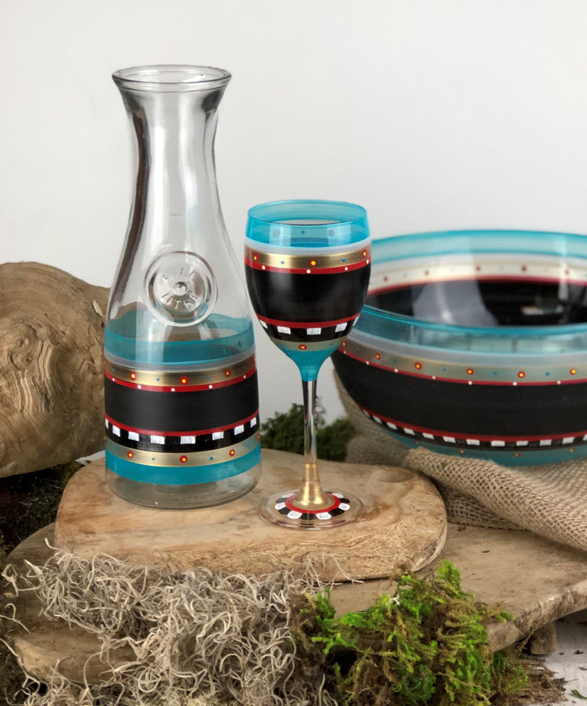 This is our fun Mosaic Chalk Collection. This is our chalk glassware that is ready for any occasion .you just need chalk to say anything you want! This carafe can not only serve wine but it can also hold your favorite bouquet of flowers and you can write on it too! Proudly Hand Painted in the USA! Please Hand Wash