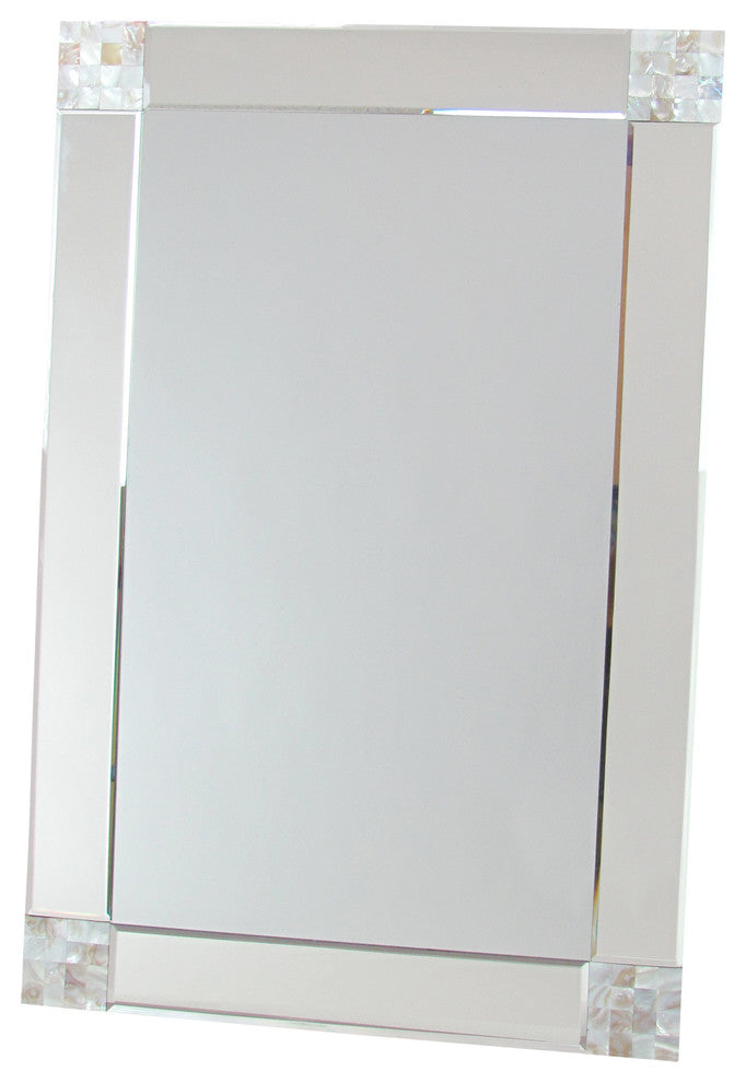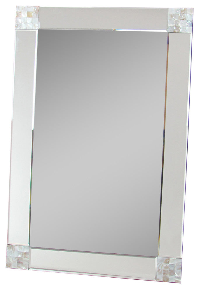 Add the finishing touch to your room with a stunning decorative wall mirror that will take your space from bland to glam. Our Mother of Pearl Corners Mirror was designed with simplicity in mind and features beveled details and touches of mother of pearl tiles that will add a touch of sophistication and tranquility to your space. Hang this mirror in your entry way for instant "wow" factor or integrate it into your gallery wall to complete a look. The Mother of Pearl Corners Mirror measures 35 inches wide and 24 inches tall.