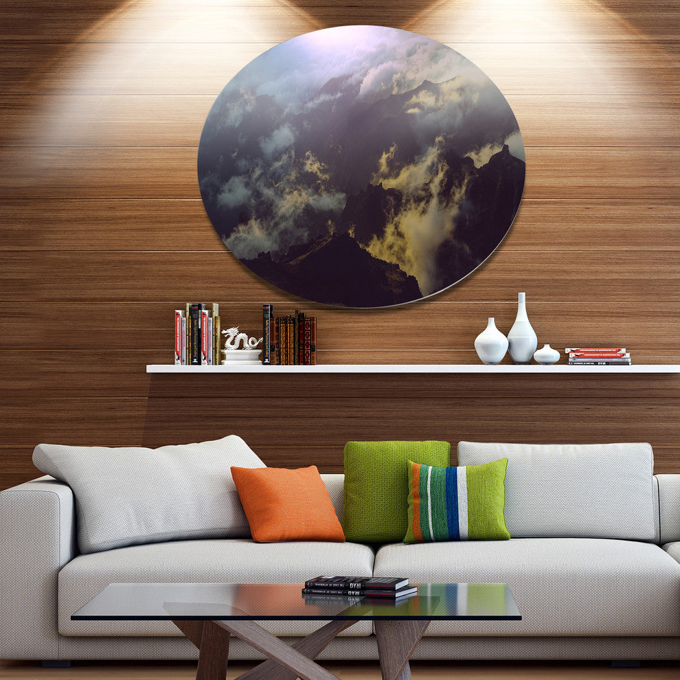 Bring Contemporary Abstraction to your home with this large Circle Metal wall art. This Mountain Above the Clouds View Metal Artwork makes it the focal point of any room or office.