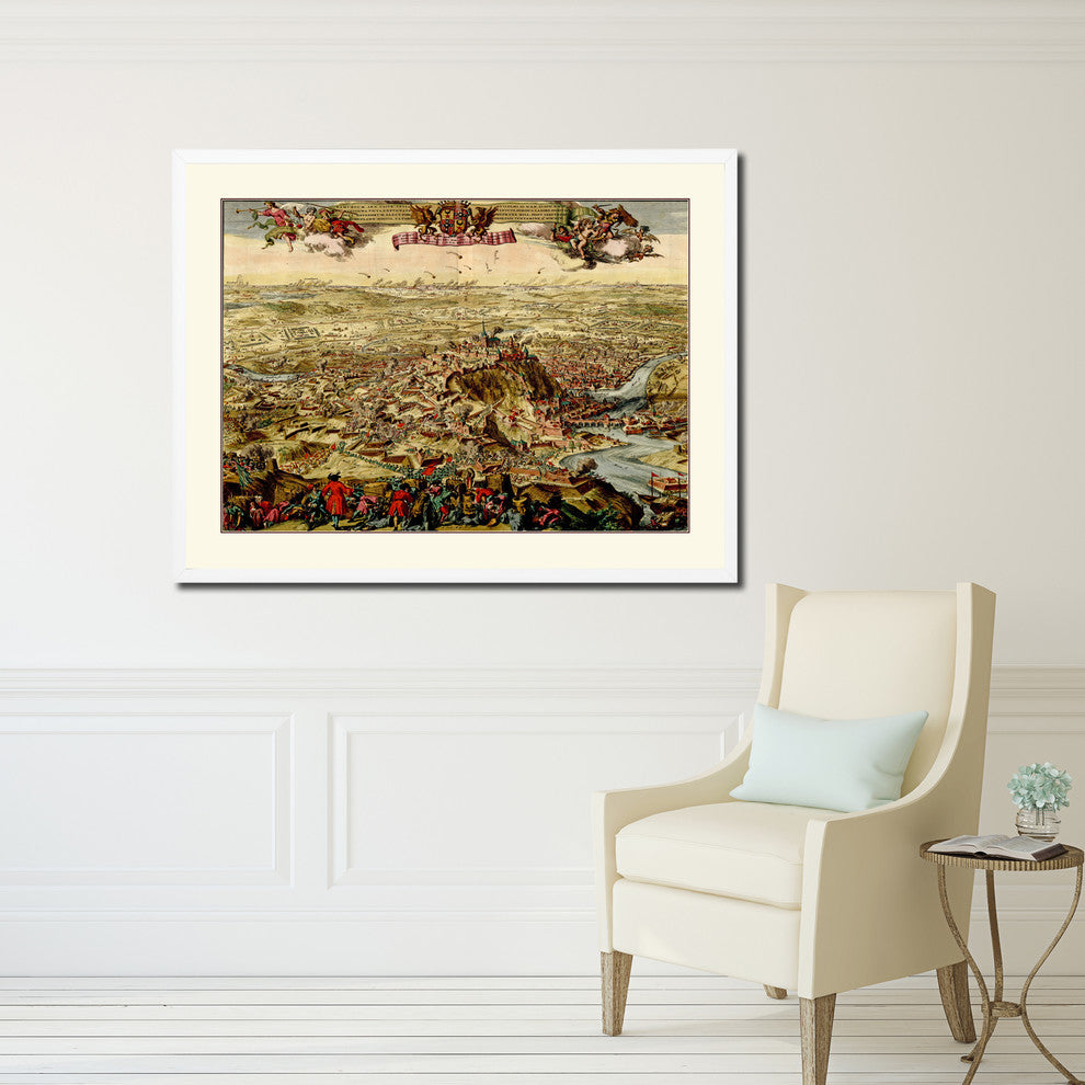 Mountain Fortress Vintage Old Map Print On Canvas With Picture Frame 28" X 37"