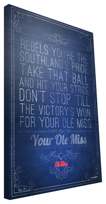 Keep your college pride alive in your home with this University of Mississippi Song canvas print. This canvas print is 16"x24".