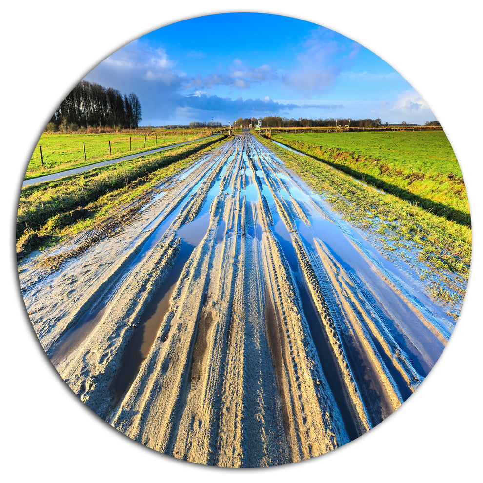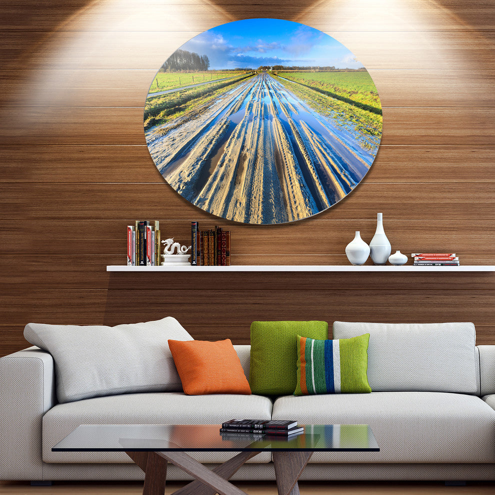 Muddy Sand Lane On Sunny Day, Landscape Disc Metal Artwork, 11"