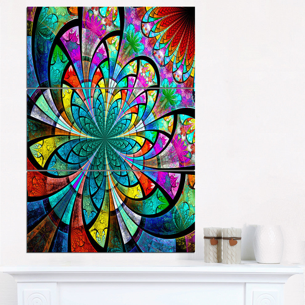 "Multi Color Fractal Flower Pattern" Metal Wall Art, 3 Panels, 28"x36"