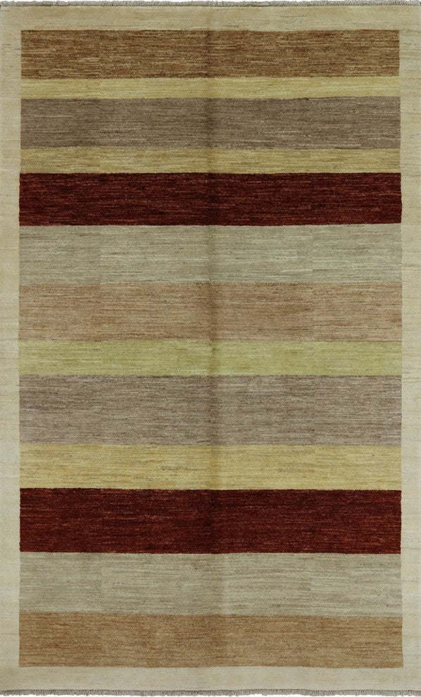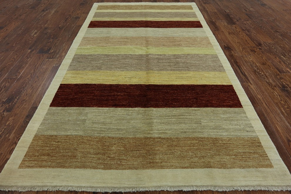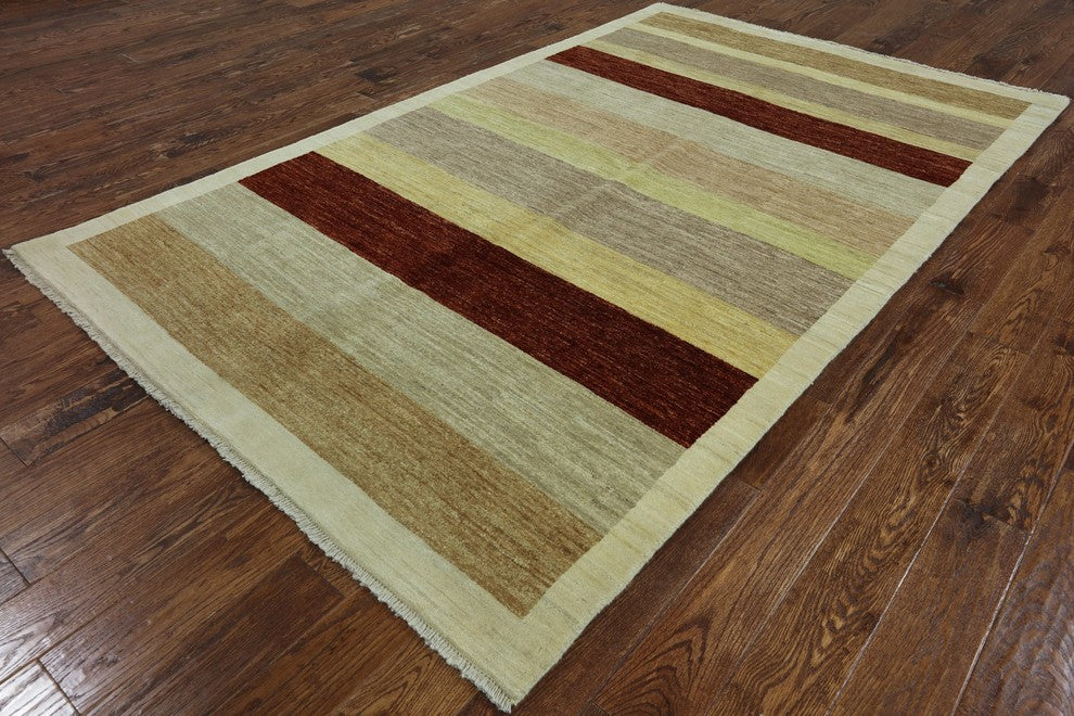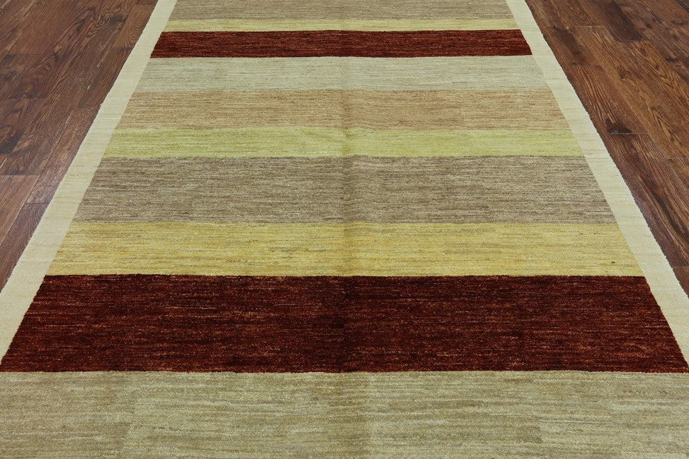 Multicolor Striped Gabbeh Hand-Knotted Wool Rug, 6'x9'