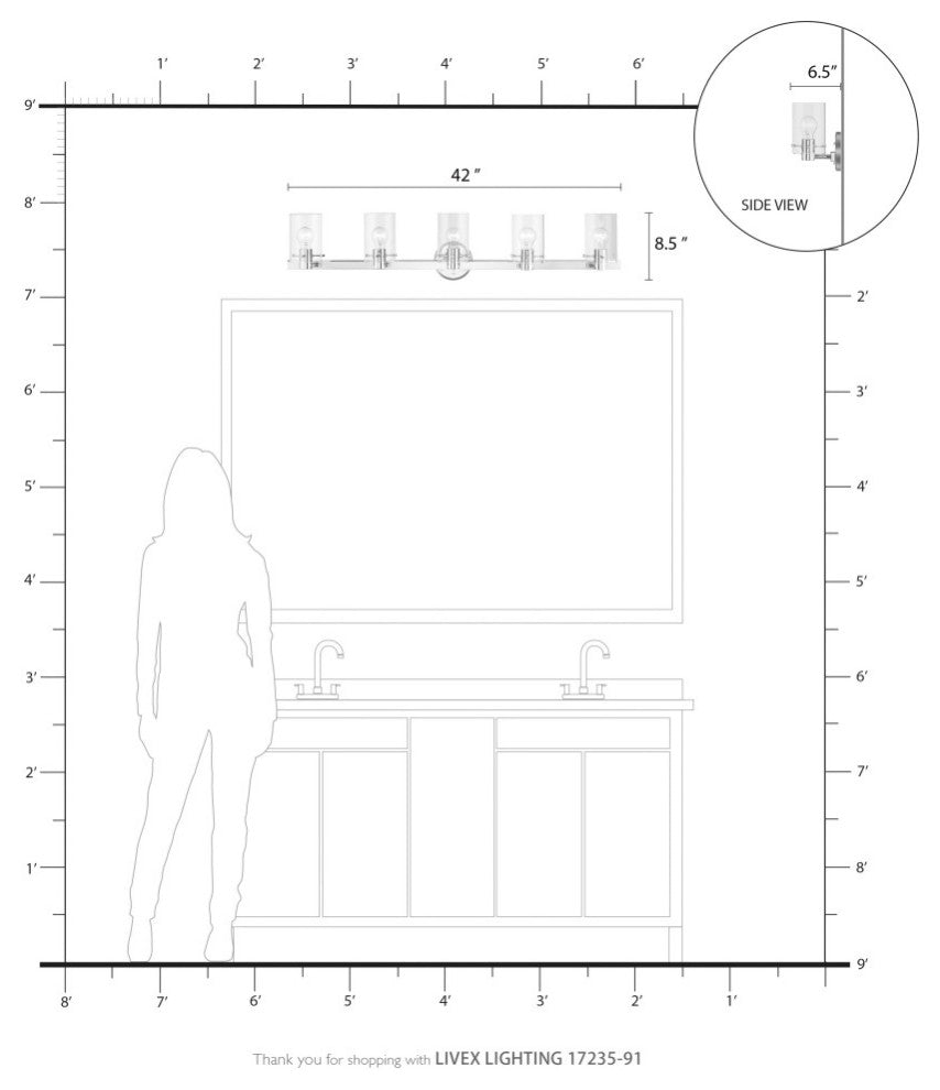 The Munich transitional five light vanity sconce will bring posh sophistication to your decor. The backplate and clear cylinder glass give this brushed nickel finish a sleek, contemporary look.