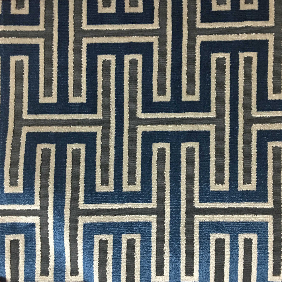 For sale online is our Muriel cut velvet fabric with a beautiful geometric designer pattern. The velvet is raised on top of the fabric and feels very soft. This heavy duty fabric is durable and perfect for interior design upholstery and reupholstery projects including but not limited to chairs, sofas, decorative pillows, ottomans, couches, bedding, and pillows. Also great for drapery.Content: 30% Polyester 70% RayonWidth: 55"Available Colors: 14 Weight: 530 g/m2Pattern Repeat: Horizontal-4 3/4" / Vertical-7 1/4"Pattern Direction: Up the rollCleaning Code: SAbrasion: 81,000 cycles Martindale method• • Fabric by the yard. Order: 1 quantity = 1 yard.