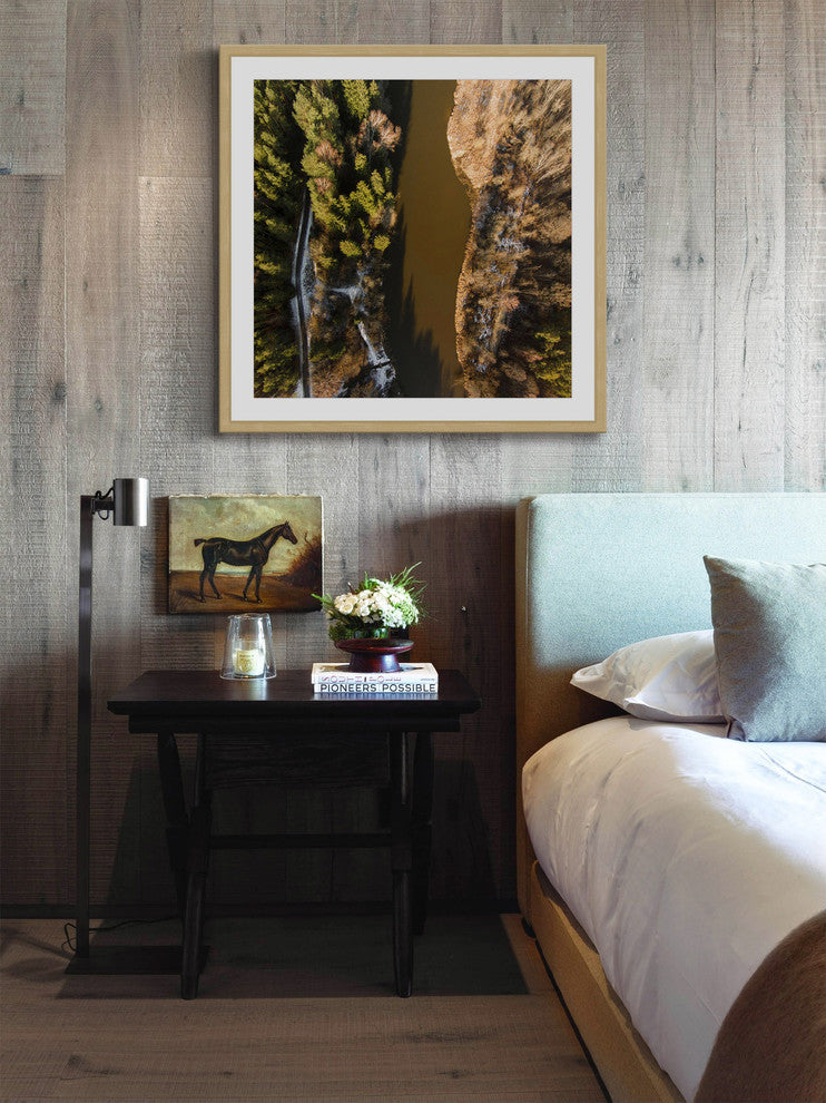 "Murky Waterway" Framed Print by Karolis Janulis features vivid tones and supple artistry. Mounted in a gorgeous frame, this 24 inch wide by 24 inch tall piece will be an exceptional addition to any room. Top quality Giclee print on high resolution Archive Paper Artwork by Karolis Janulis Professionally framed and mounted on acid free archive matte High quality durable non-warping frame Arrives ready to hang Includes a certificate of authenticity Made in the USA