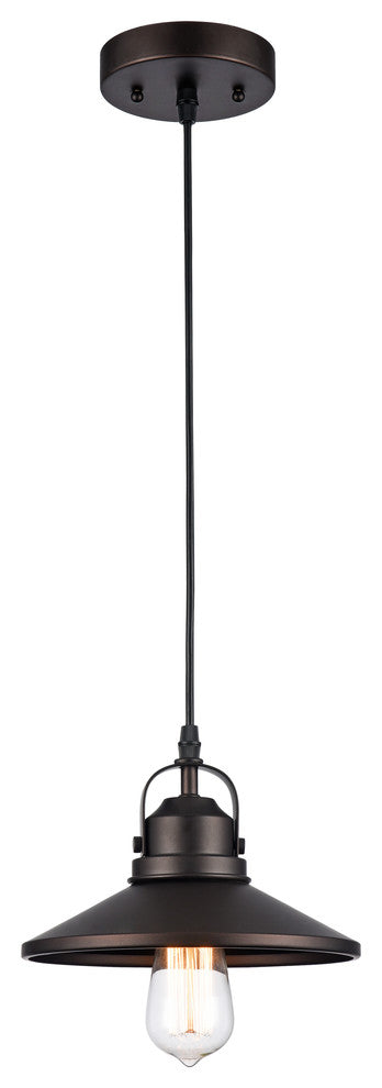 This 1-light pendant features an oil rubbed bronze finish that will complement many industrial, urban, loft, and transitional decors. The matching metal shade adds interest and helps create a warm ambiance to any space. One (1) 60 watt Edison bulb is included.