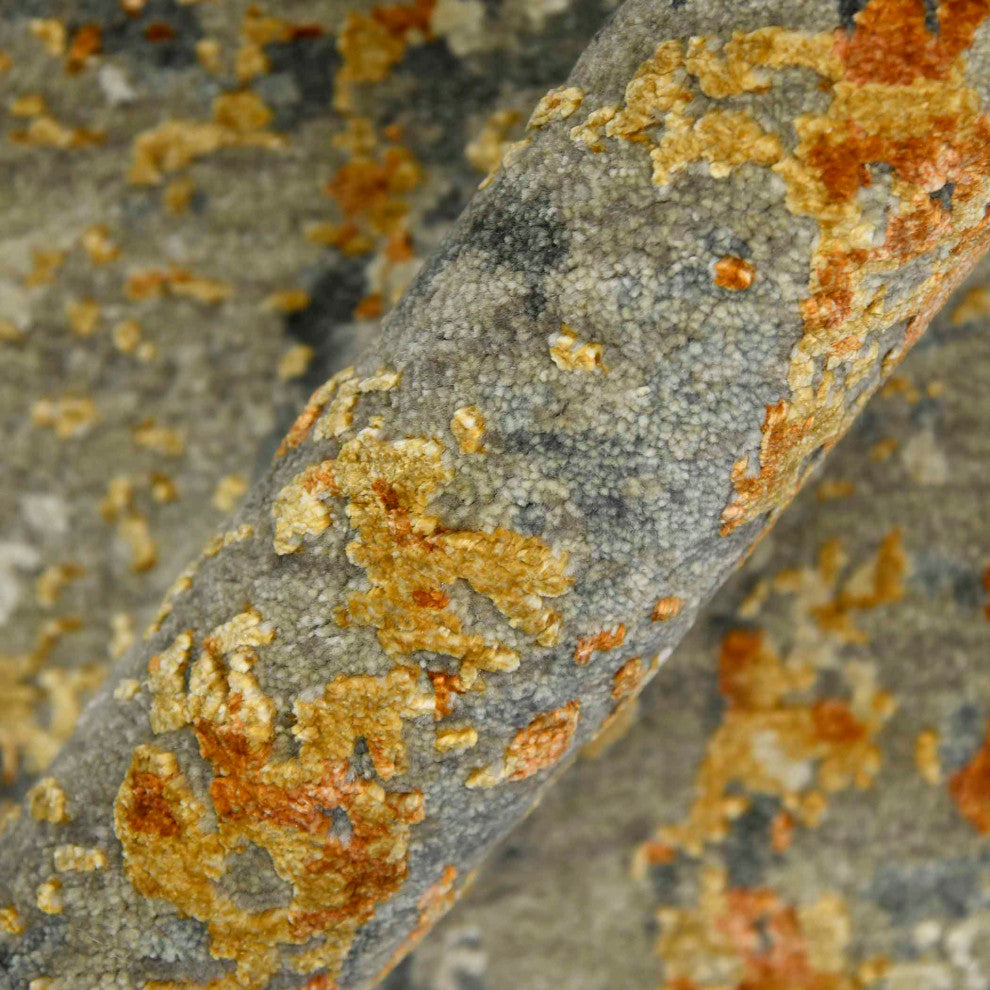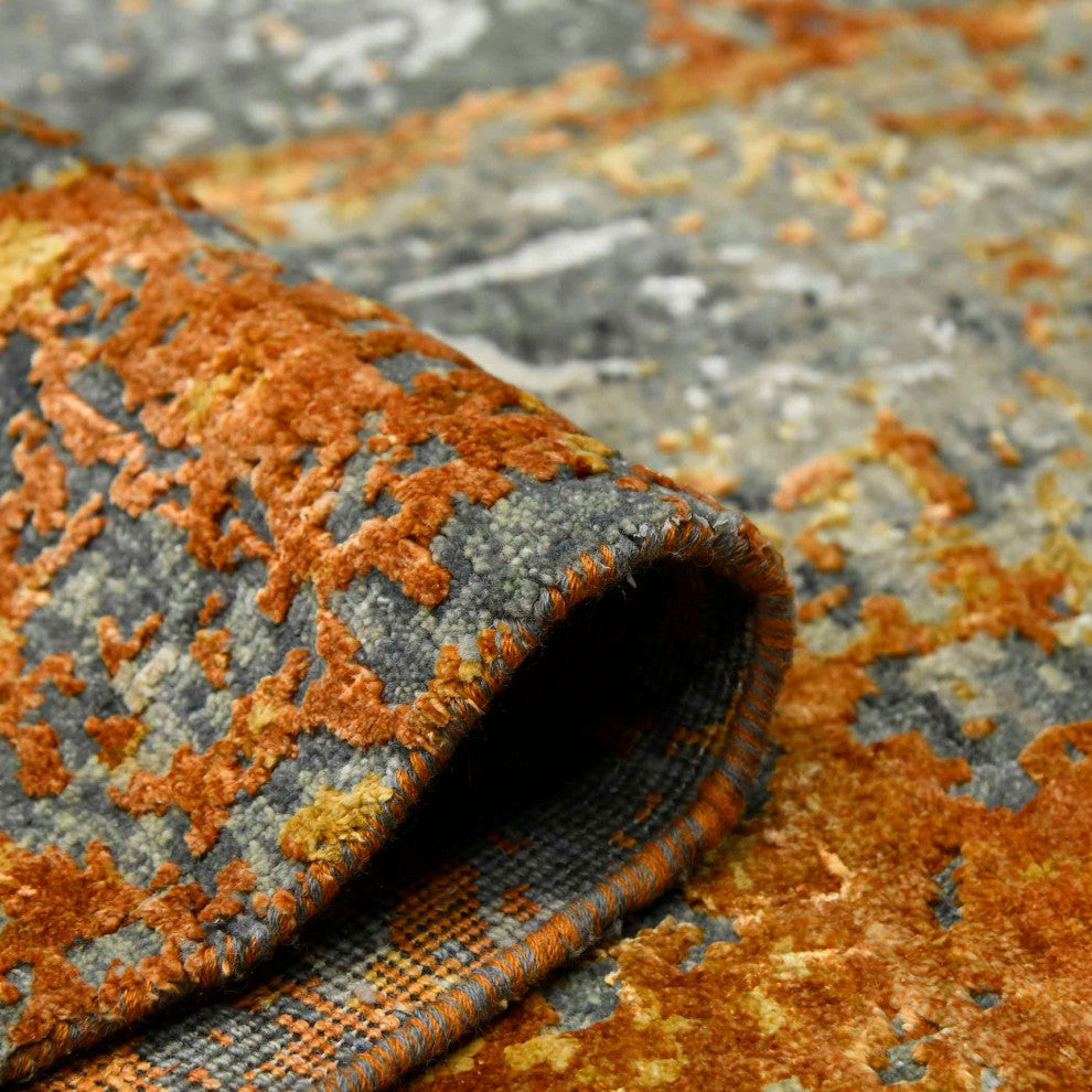 Bold, abstract designs and bright colors make up this beautiful hand-knotted piece. Made of only the finest hand-picked and meticulously inspected premium New Zealand Wool and raw handspun all-natural silk, this rug is hand-carved to give a high-low effect, with stunning results. The silky texture gives a lustrous feel and the wool adds durability and strength, allowing you to pass this rug down from generation to generation.