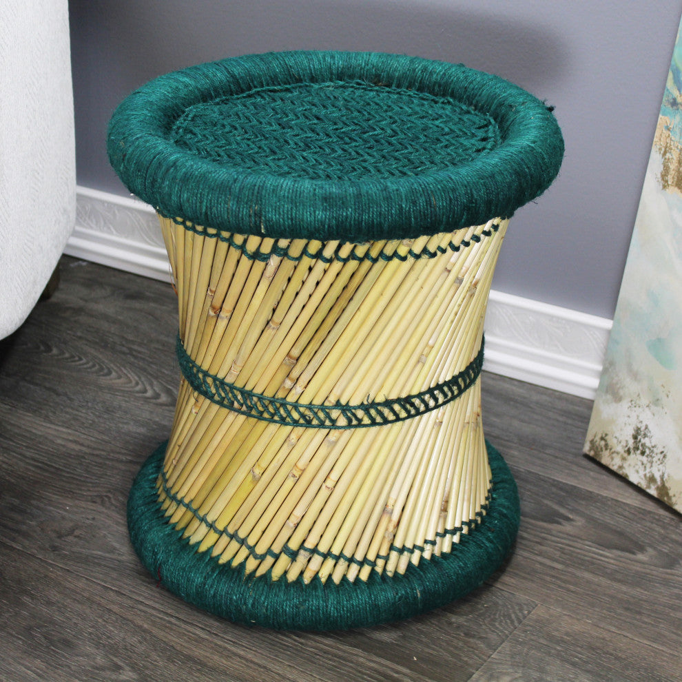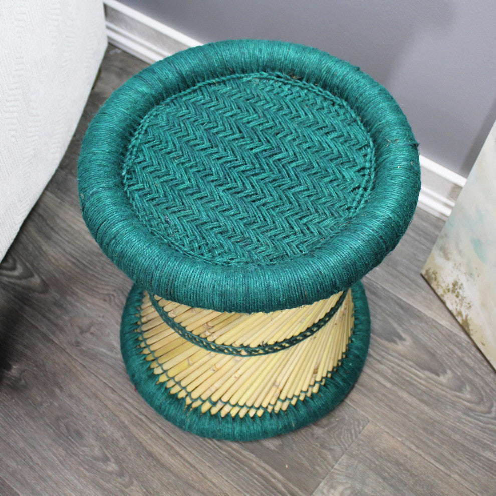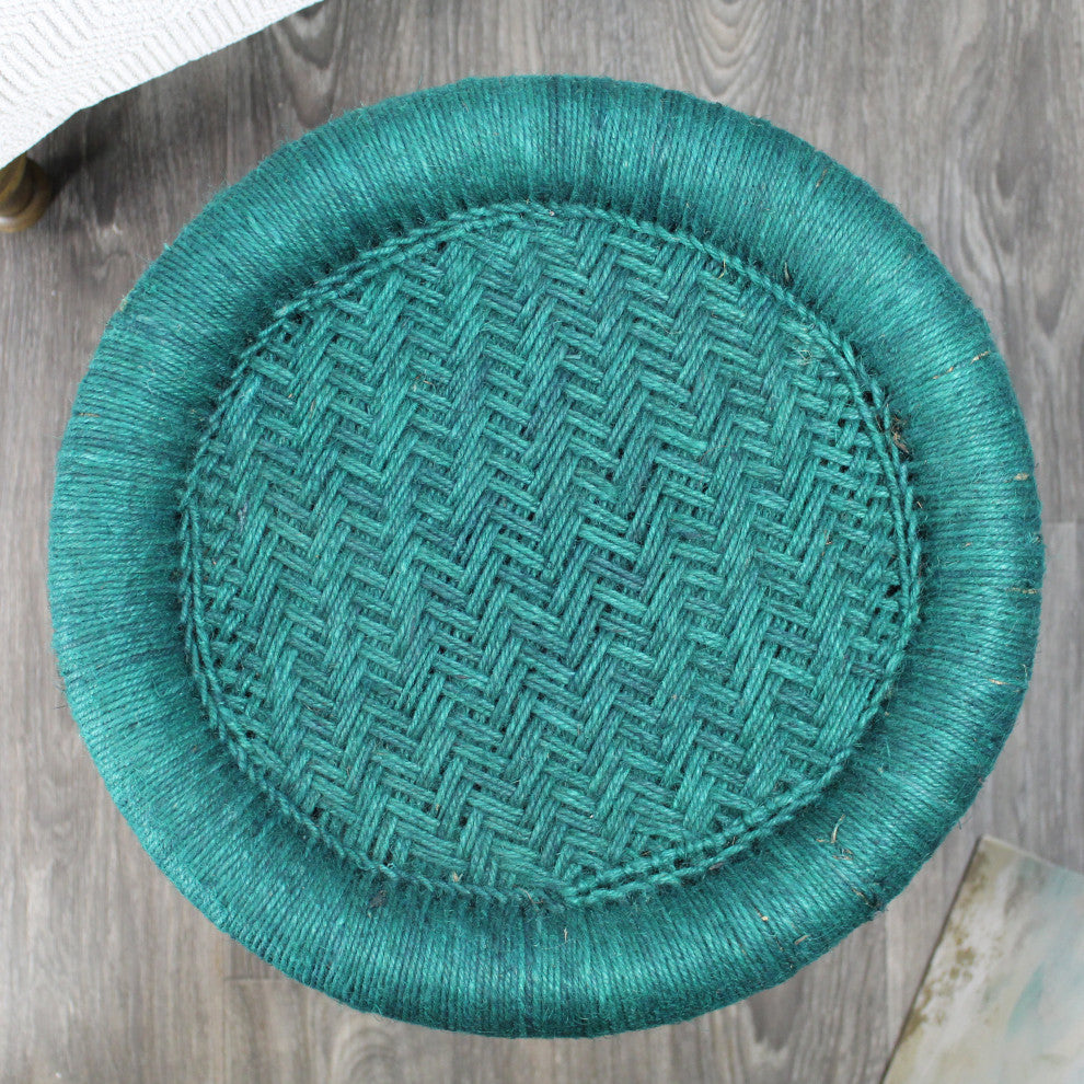 Natural Geo Moray Decorative Handwoven Jute Accent Stool, Teal