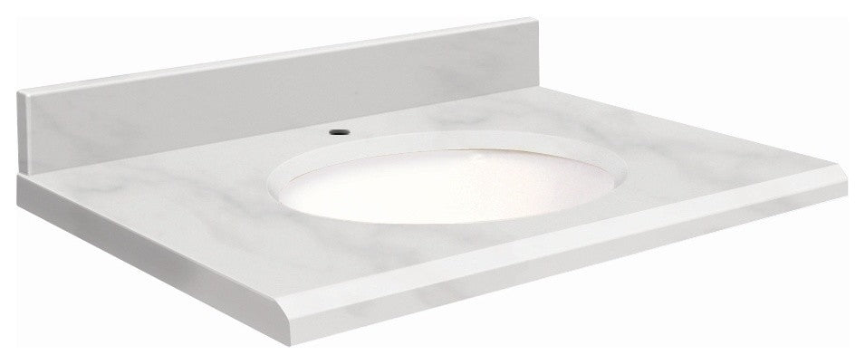 Natural Marble 31"x22" Vanity Top, Single Faucet Hole, White Carrara, White Bowl