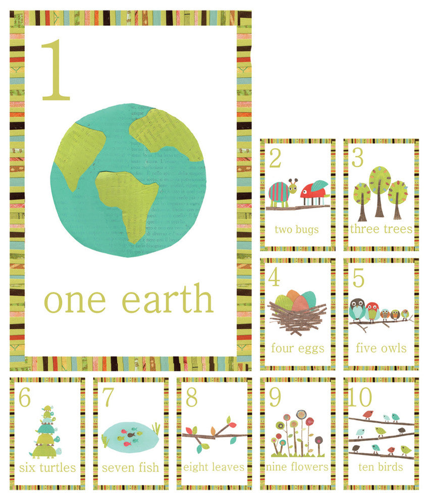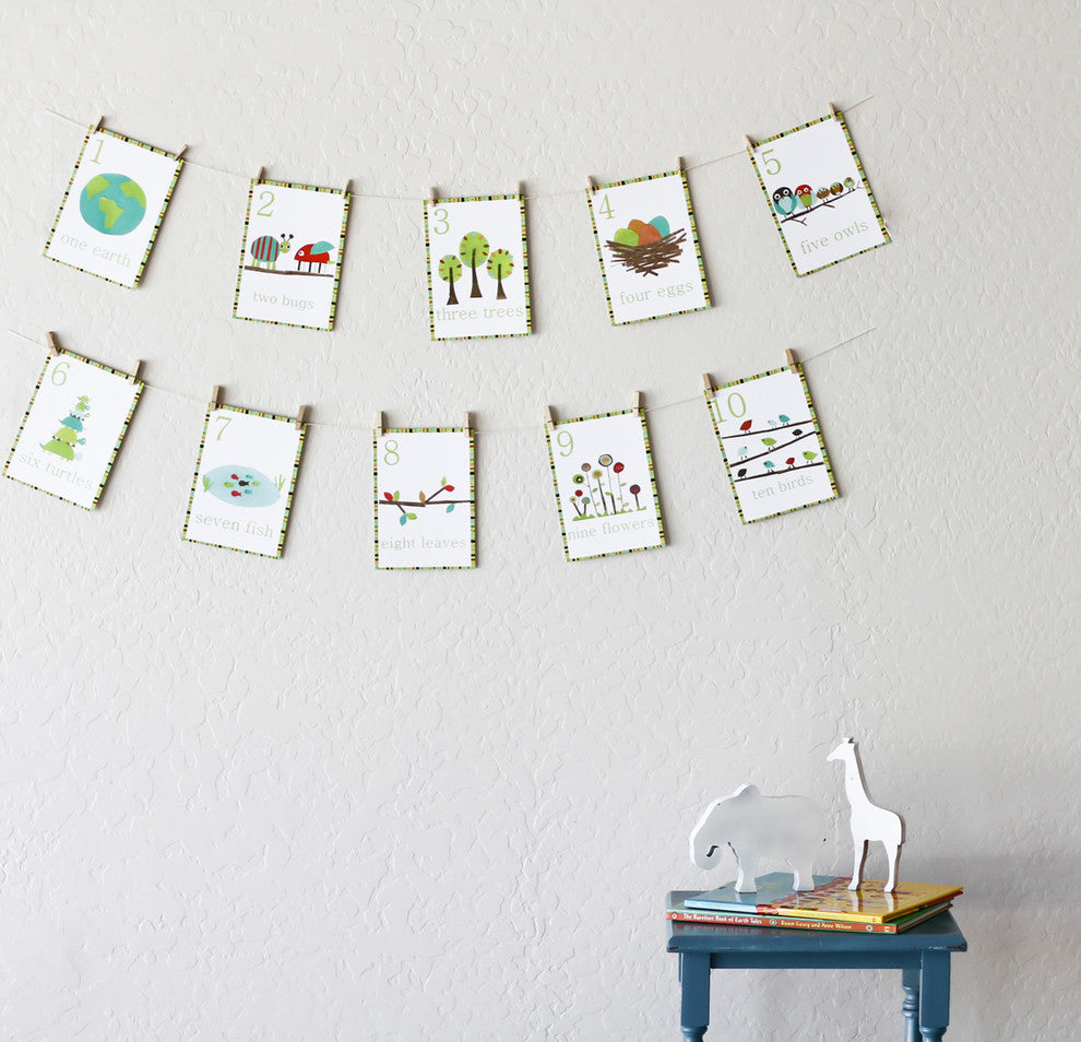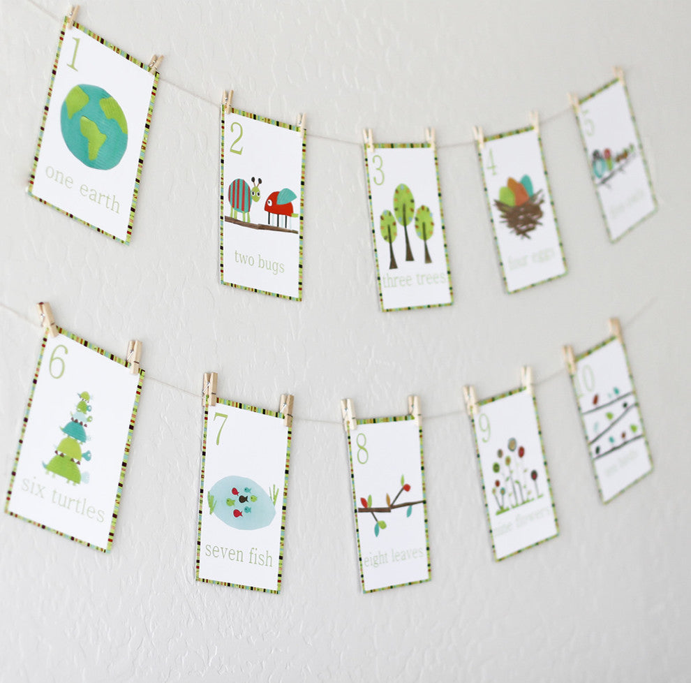 Nature Themed Number, Set of 10 Counting Children's 5x7 Wall Cards