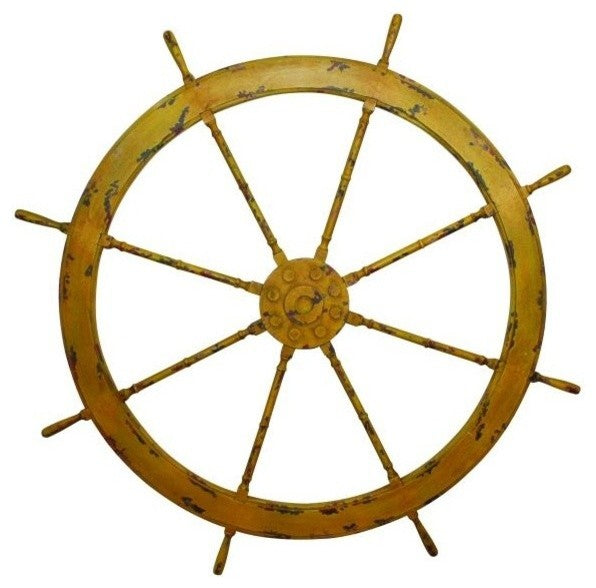 Inspired by steering wheels used on vintage yachts, our nautical wall art is classic and elegant. Handcrafted of wood. Hand finished in distressed yellow with green accents. Available separately in other sizes and colors. Size: 41'''' H x 41'''' W x 1'''' Deep Weight: 5. 1 lbs. Heirloom Quality - Expertly hand crafted and hand finished Due to the hand crafted nature of this piece, each piece may have subtle differences.
