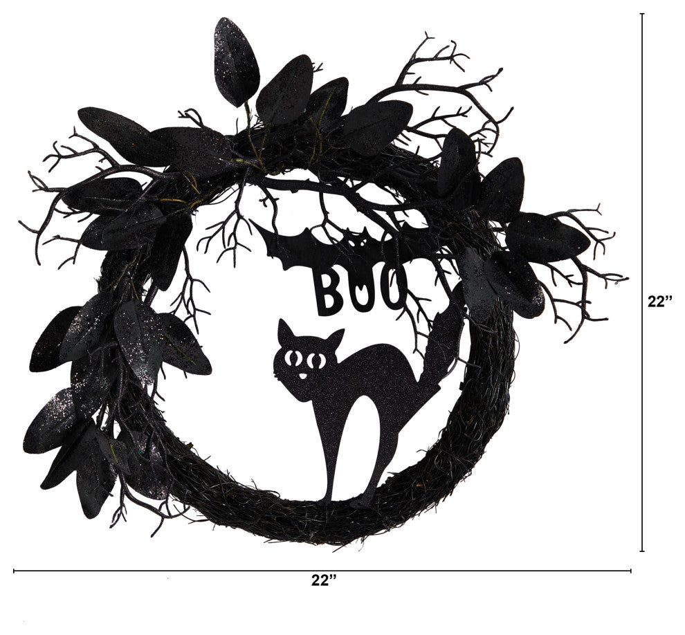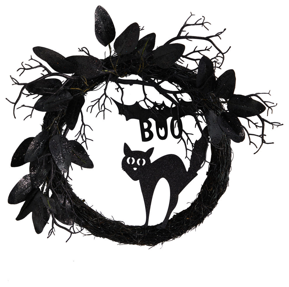 Nearly Natural W1207 22 Halloween Black Cat and Bat Boo Twig Wreath