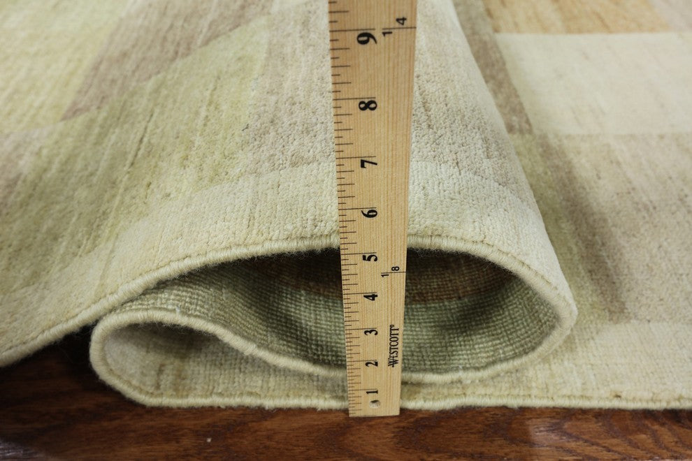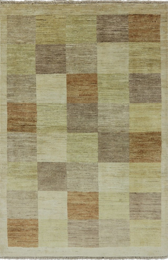 Neutral Multicolor Checked Gabbeh Hand-Knotted Wool Rug, 4'x6'
