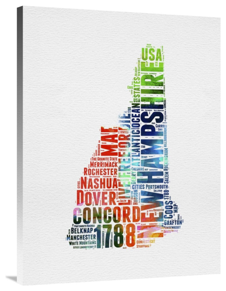 "New Hampshire Watercolor Word Cloud" Fine Art Print