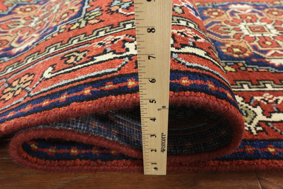 Heriz is situated in the northwestern part of Iran (Persia). Though the term covers Hand knotted rugs of numerous small villages in the area, the most beautiful Rugs were woven in Heriz itself For the last 100 years, the Heriz carpet designs have basically remained the same, with only small variations in color pallets and density of the design. The late 19th Century Rug (so called Serapis) was of fewer details and softer colors and with time designs became denser with added jewel tone color pallets. The revival of the carpet industry in the late 19th Century was based on the demand of the Western markets, with America in particular. Weavers in Heriz hand knotted were asked to make carpets inspired by the Fereghan Sarouks of higher cost for consumers of more limited budgets. Even though Sarouk carpets changed style later on, Heriz weavers stayed with the geometric pattern till now. However, Heriz was also a center of production of some of the best handmade carpets with both geometric and curvilinear floral patterns. A special heirloom wash produces the subtle color variations that give rugs their distinctive antique look.