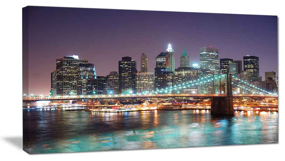 The New York City Manhattan Skyscrapers canvas art print is sure to make an impression on anyone who sees it. This artwork is gallery wrapped around a 1-inch solid wood frame and arrives carefully packaged and entirely ready to hang on the wall. Design Art only uses the highest resolution and pigments to ensure a crisp colorful print that is never faded or pixelated. This artwork is sure to be a conversation starter in any home or office.